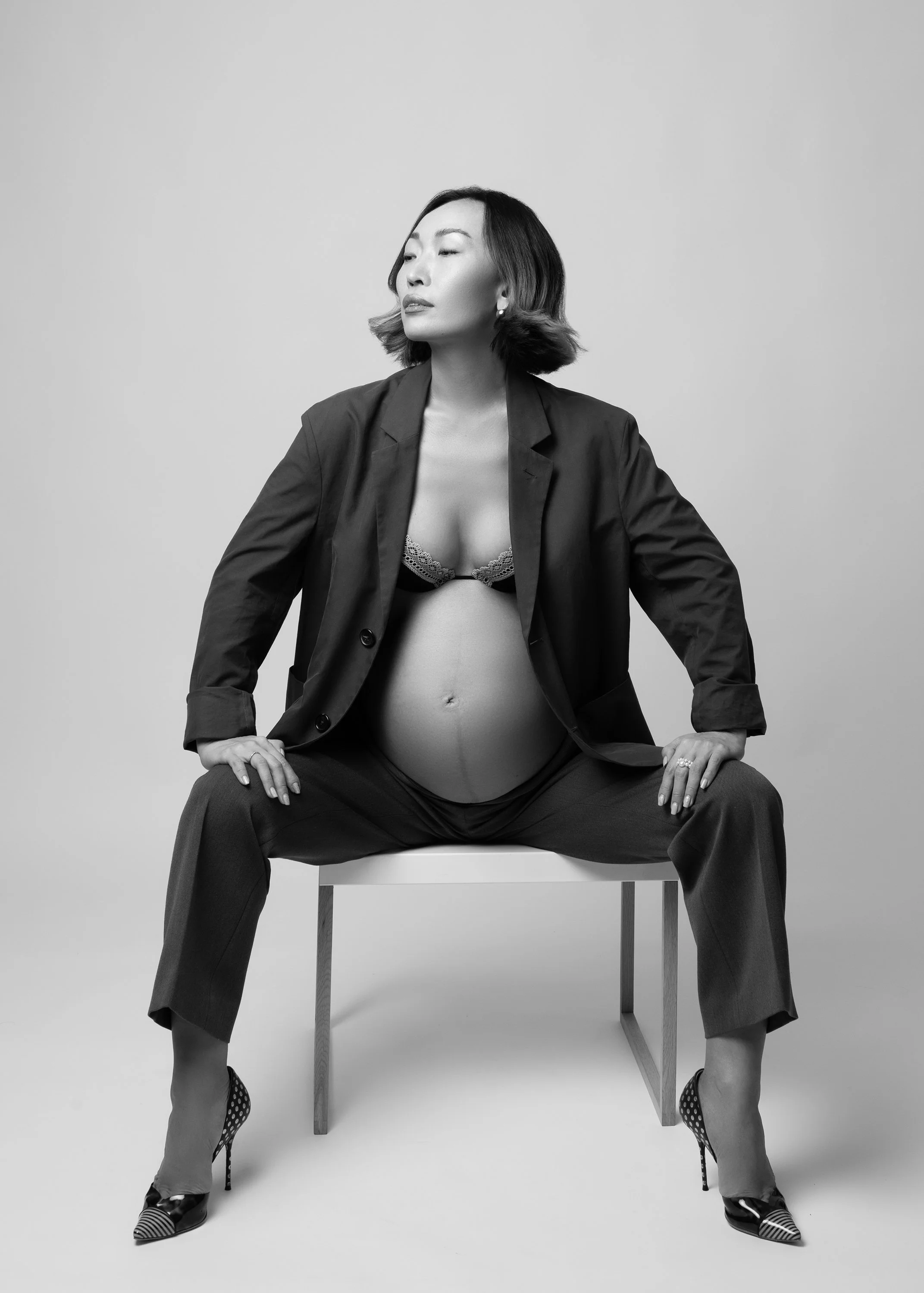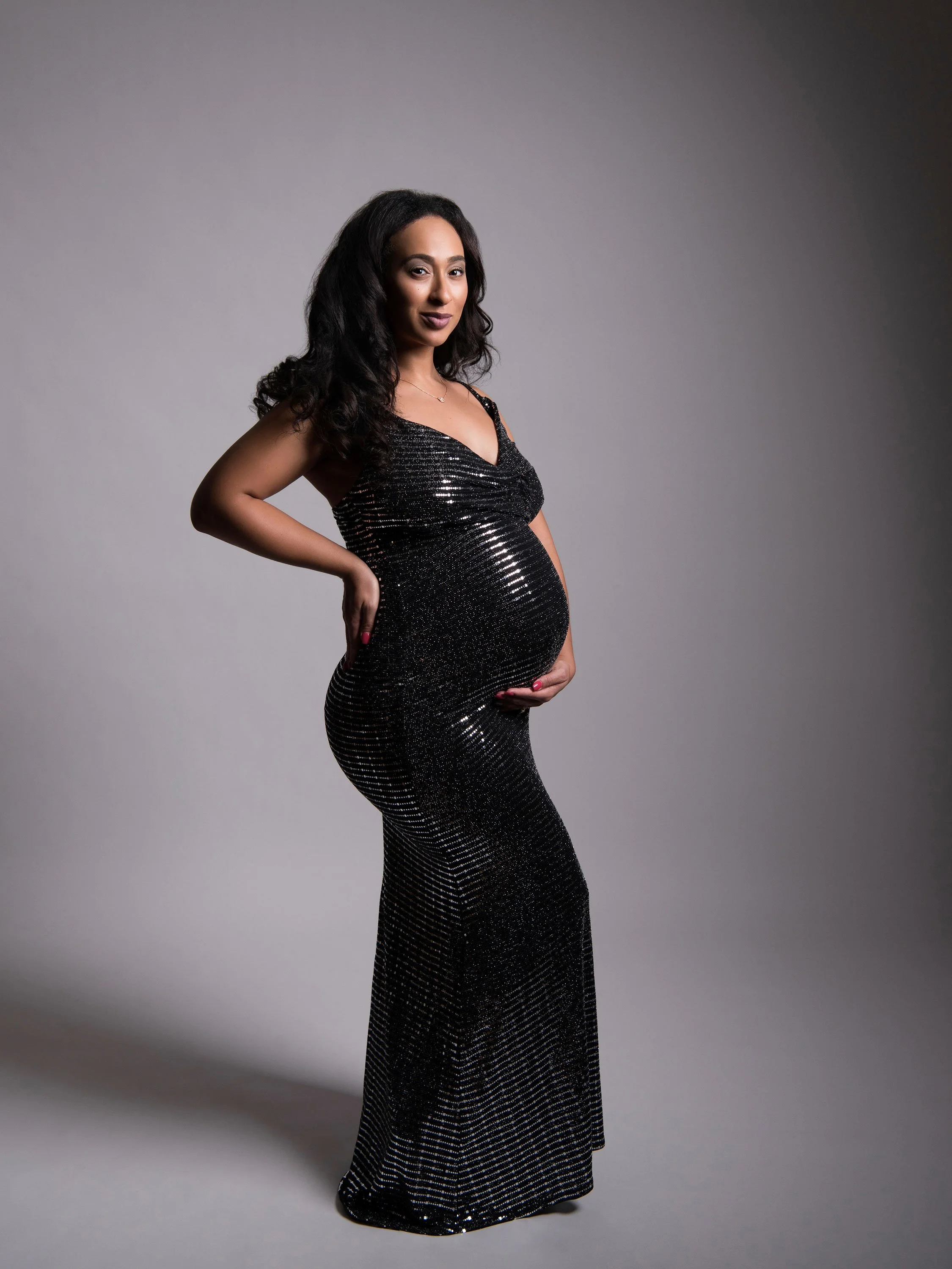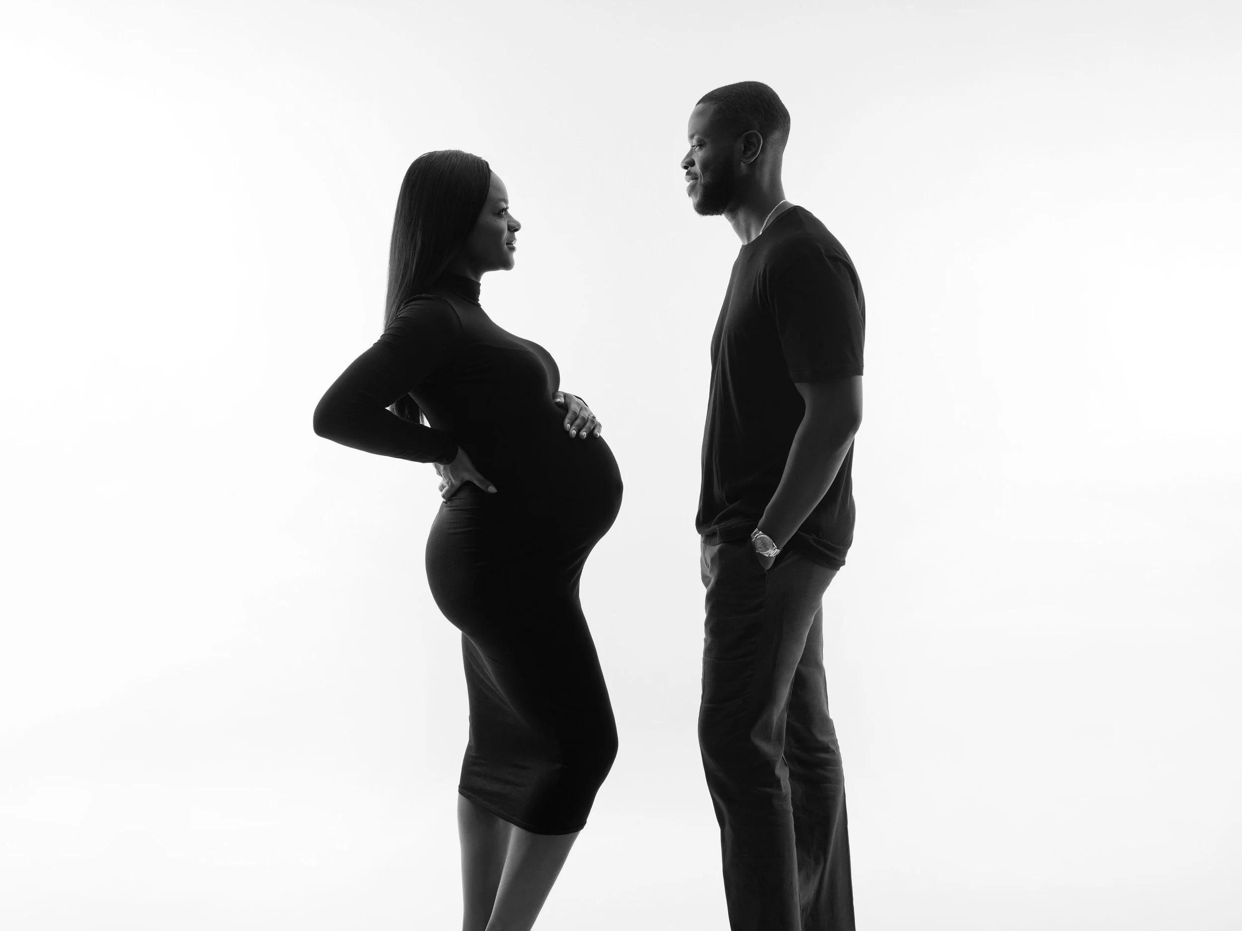 In a studio maternity photoshoot in London, careful direction and lighting are used to create polished, high-impact images that feel both contemporary and timeless.